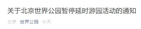 因疫情原因,接到上级有关部门的指示精神,为保护广大游客的身体健康,北京世界公园从2020年6月19日起,白天正常营业,延时游园活动暂时取消,后续活动待定。