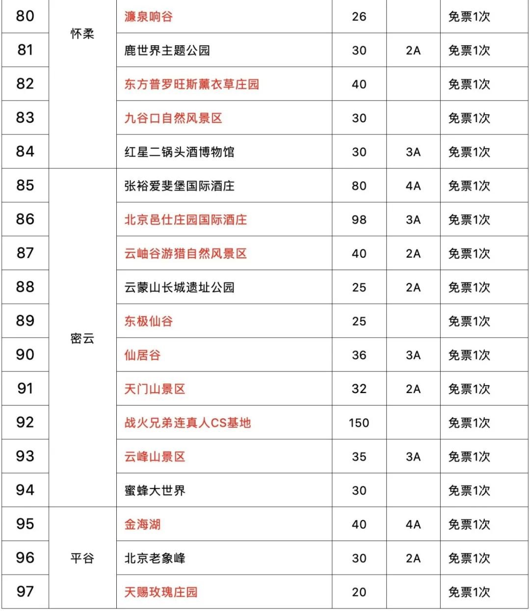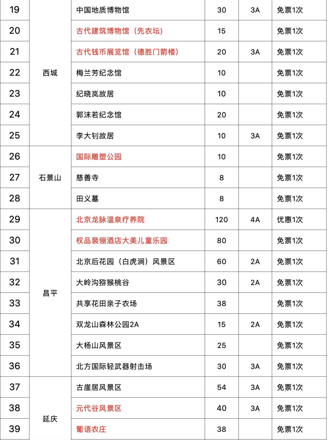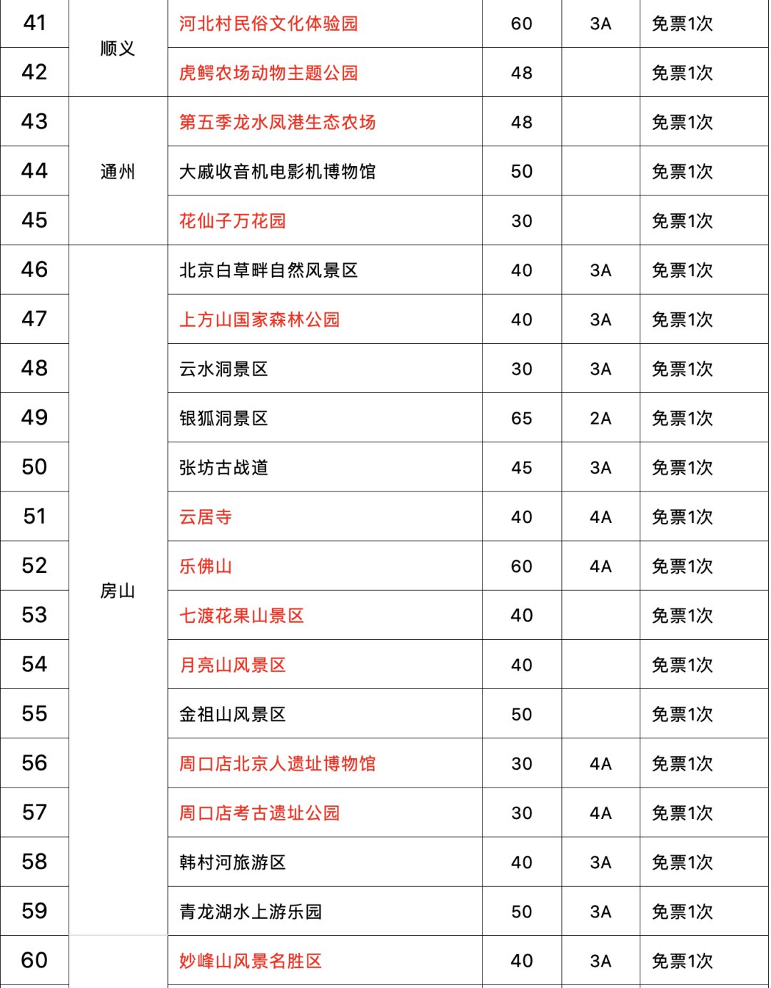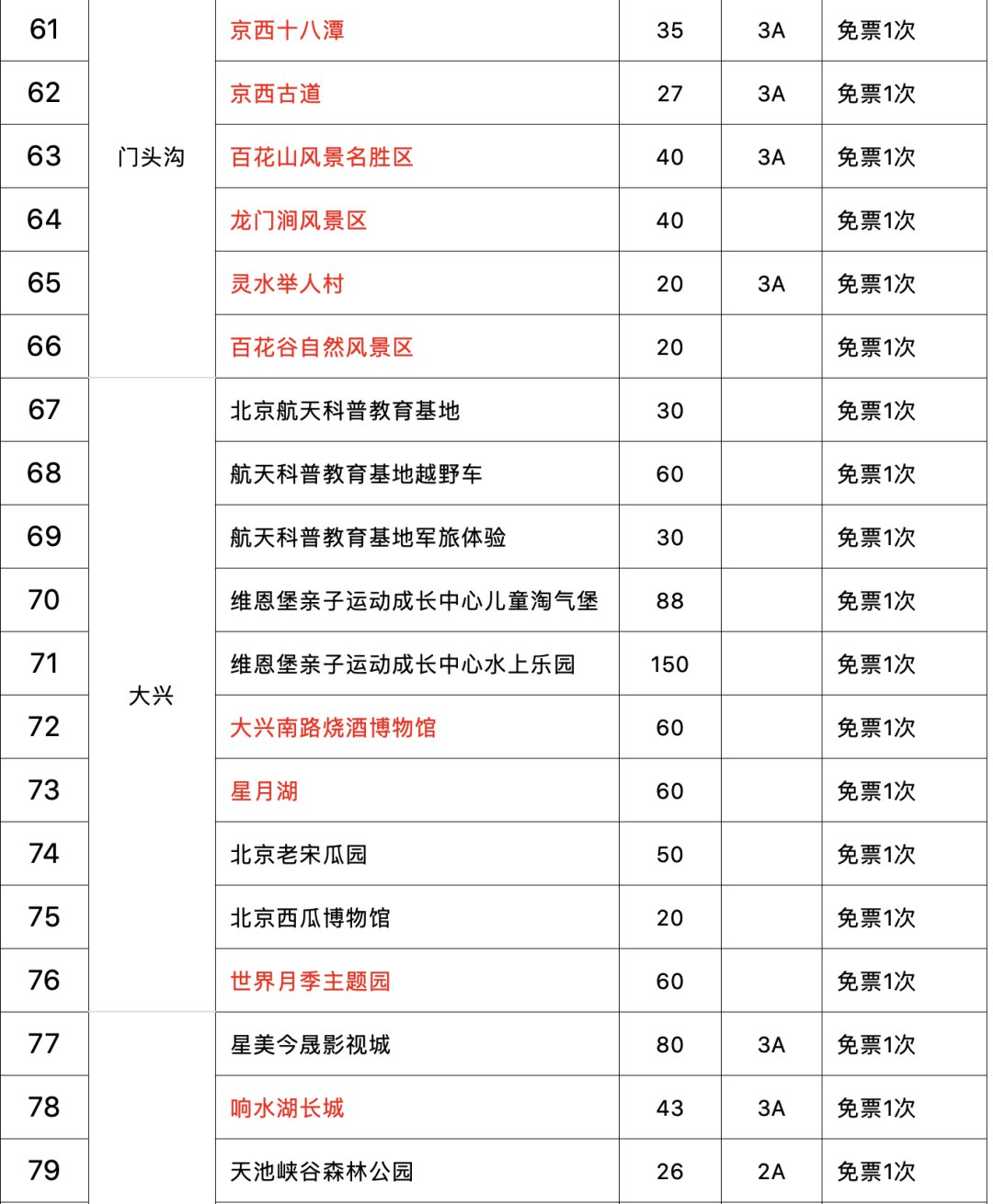 继续保留了国家动物博物馆、中国地质博物馆、孔庙和国子监博物馆、郭沫若纪念馆、中国紫檀博物馆、东岳庙、智化寺、大觉寺、大钟寺、先农坛、响水湖长城、仙居谷、京西古道、天门山、九谷口、百花山、龙门涧、北京后花园等60家景区博物馆。