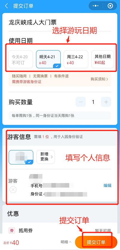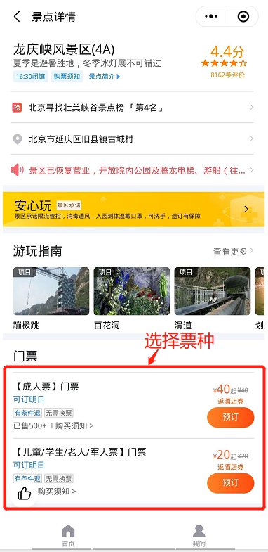 北京龙庆峡景区门票购票操作步骤