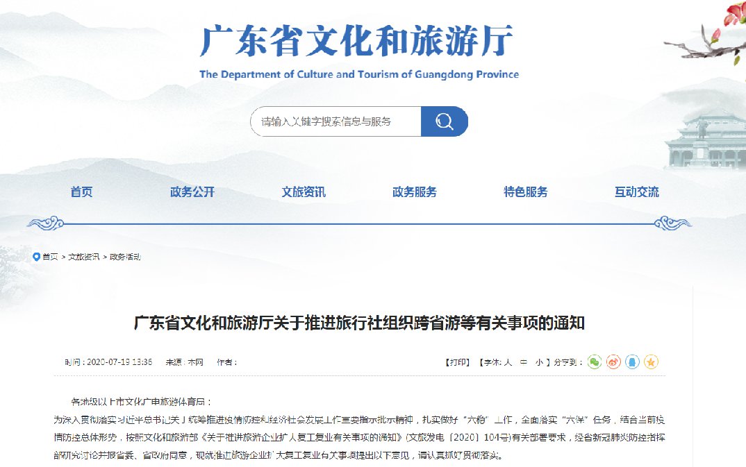 广东省文化和旅游厅关于推进旅行社组织跨省游等有关事项的通知