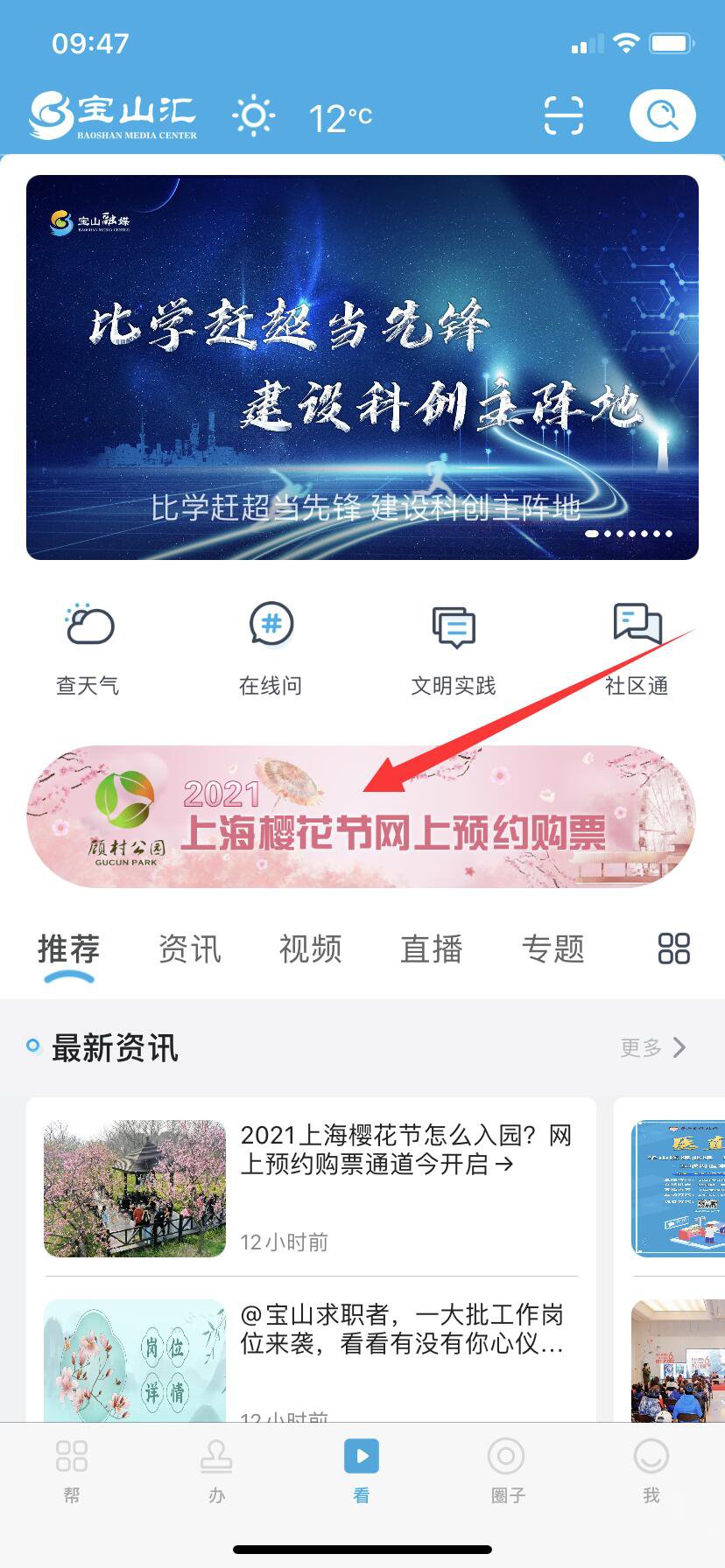 2、打开宝山汇APP,首页中间位置即可看到预约通道,点击进入;