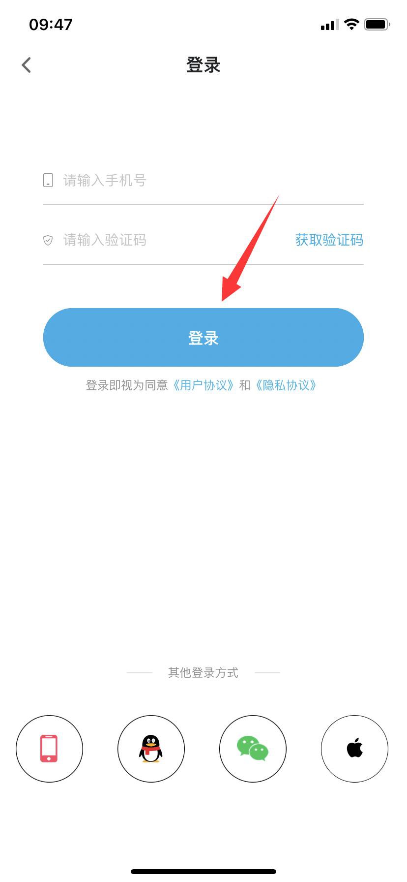 3、输入手机号及验证码,点击登录;