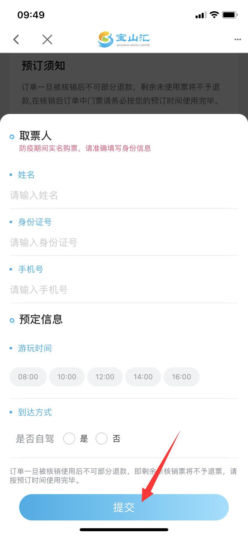 5、依次填写取票人信息,点击提交,完成实名制预约购票。
