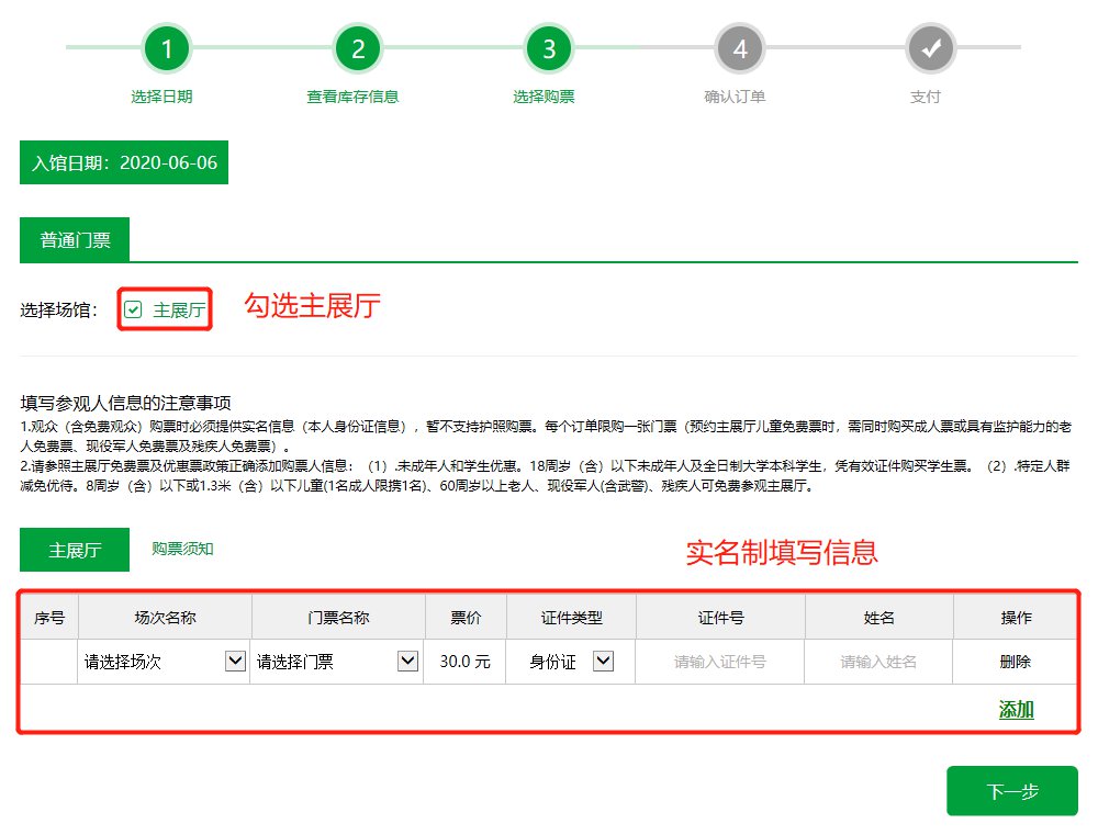 2、进入预约购票页面,选择参观日期