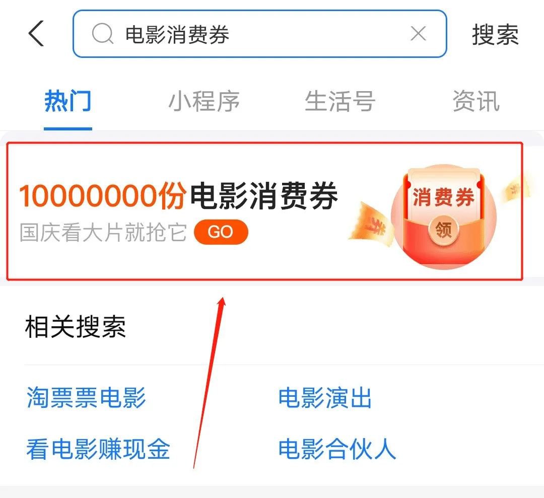 1、打开支付宝,在搜索框输入“电影消费券”;