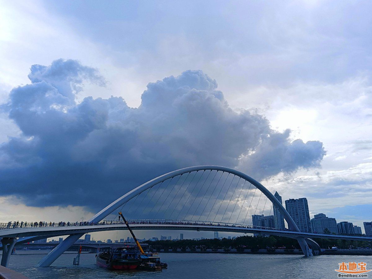 2021年6月25日上午,世界跨度最大、宽度最宽的曲梁斜拱人行桥——广州首座珠江两岸人行桥正式建成开通,桥梁正式命名为:广州海心桥,广州海心桥昵称小凤眼。