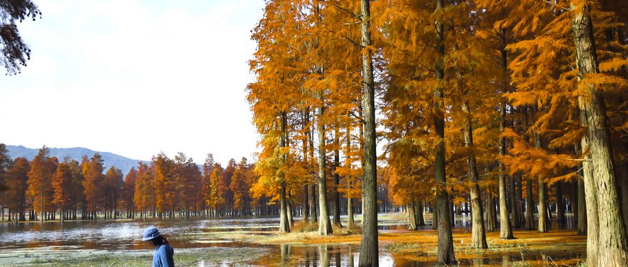 入冬后,水杉叶色由绿色渐渐变金色,甚至成了火红的颜色。推着一辆自行车漫步在公园的水杉林中,红杉成林,湖光荡漾,眼前的树与水交相辉映。阳光打在杉林上,宛如大自然无意中打翻了调色盘,呈现出红、金、绿交织的绚丽色彩。公园今年还设了落叶景观道,抓紧时间去赏一赏吧。