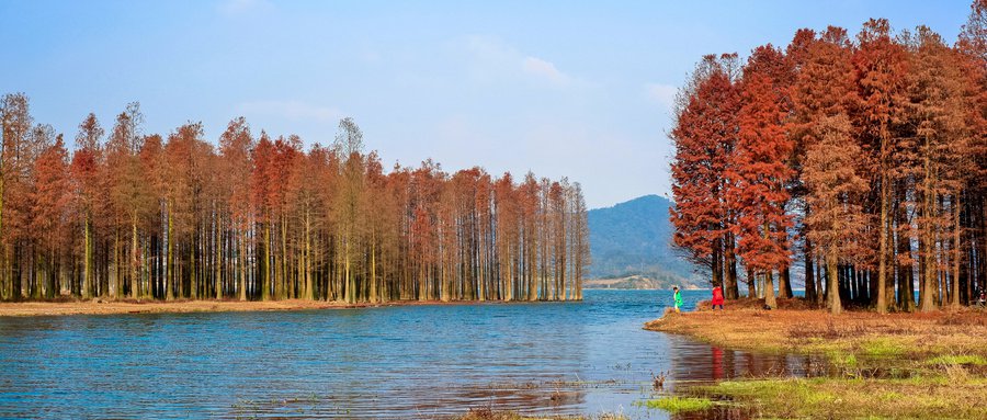 这个季节,滨江森林公园随处可见的北美风香、乌桕、榉树、无患子这些树的缤纷落叶已经遍布道路、树丛、小溪,而落了叶的树林也愈发显出她的秀颀与挺拔。水杉、池杉等各类杉树已经迎来了最佳观赏期,在众多斑斓色彩中,这抹水杉红格外亮眼。因为日照的不同,杉树的颜色十分丰富。色彩随着季节慢慢渗入,由绿变成红褐色,就像大自然打翻了调色盘。杉树在阳光的照耀下,呈现出绚丽色彩,浓烈而厚重,给秋冬平添一丝暖意。
