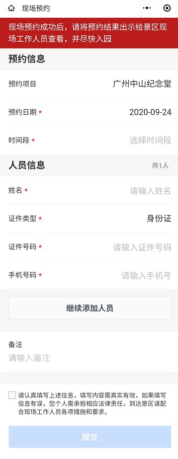 1、进入“预约小程序”,根据表单指引,填写预约相关信息。包括:预约人姓名、证件类型、证件号码、手机号码等信息,支持新增多人预约,填完所有信息后,勾选已阅的注意事项,点击【提交】。