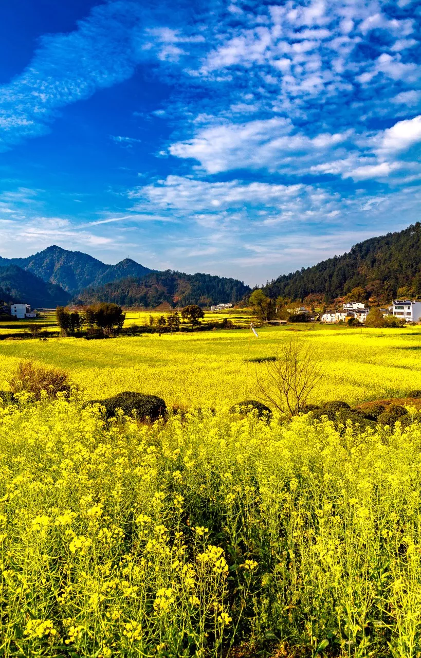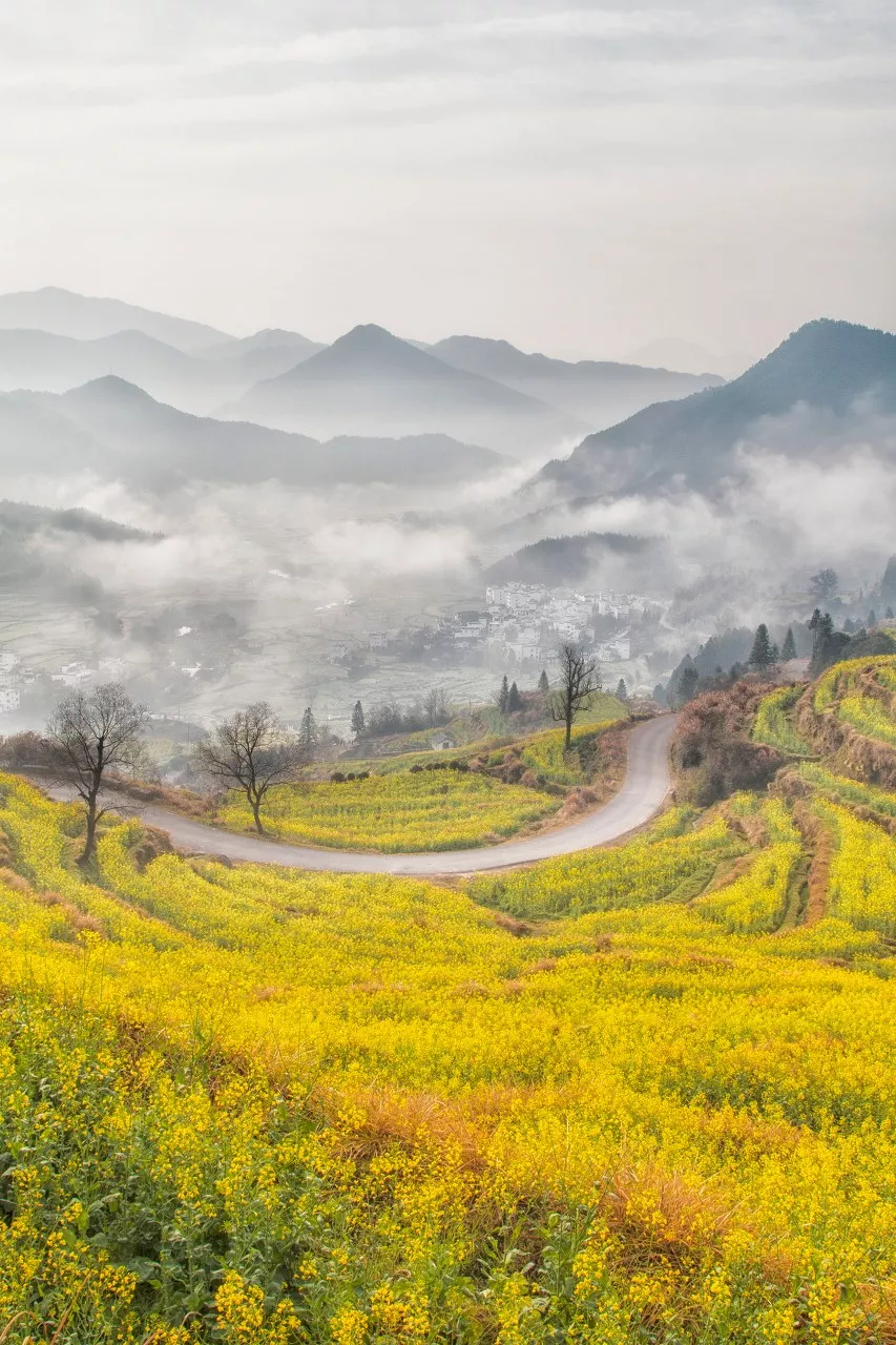 白墙黛瓦的民居,掩映在层层金黄的梯田油菜花海,漫步其中,仿佛是行走在一幅幅唯美的天然画卷中。