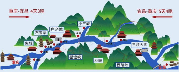三峡豪华游轮主要是长江三峡重庆-宜昌段行驶,途径瞿塘峡、巫峡、西陵峡,沿途停靠丰都鬼城、石宝寨、白帝城、小三峡、三峡大坝、神女溪、神农溪等精华景点游览。全程吃住在游轮上,十分休闲惬意。