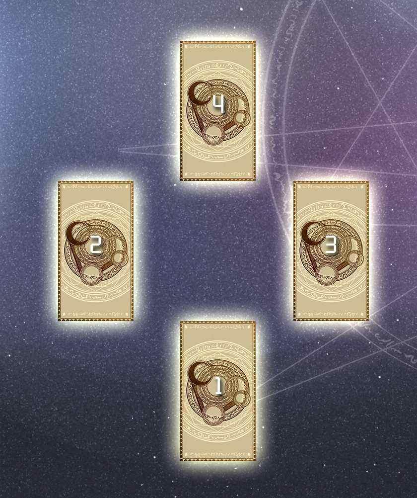 这种牌阵与圣叁角占卜法类似,都是针对问题的过去、现在及未来情况来做解释。它适用是非题,如可不可以…会不会….要不要….等要求有明确结果的题目。而与圣叁角占卜不同的是:它的现在情形,是以两张牌来综合解释,所以更能充分反应求问者的现况。