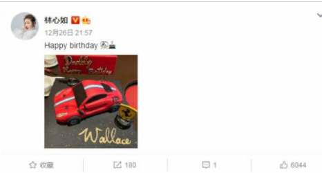 26日晚,林心如晒出一个法拉利造型并写着“daddy happy birthday”的生日蛋糕,以女儿的名义送给霍建华庆生。霍建华拥有一辆限量款的红色法拉利,全球仅有799辆。