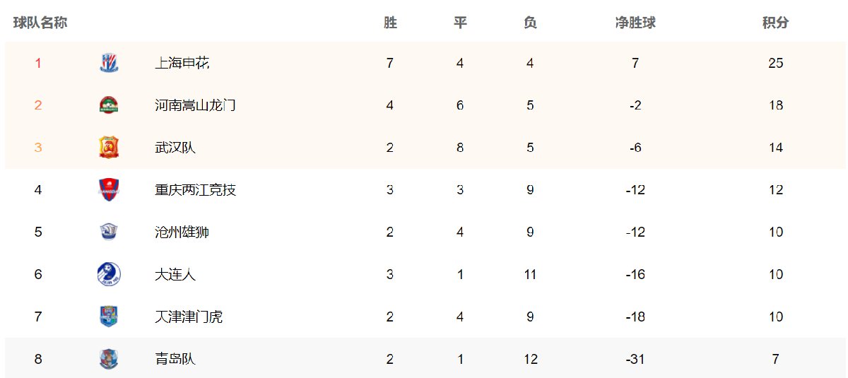 2021中超联赛排名榜(最新)