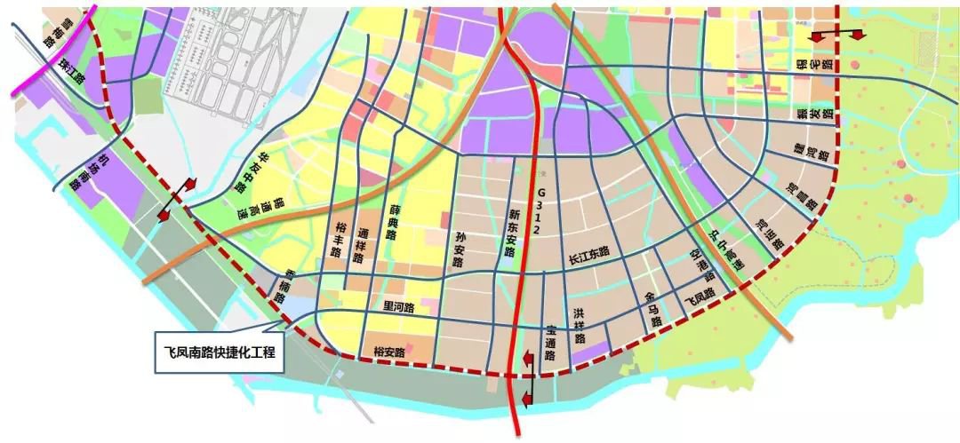 由市、区联手共建的飞凤路新建工程,是现状飞凤路的北延伸,南起泰伯大道,与鸿泰路、纬三路相交后,上跨锡通高速,止于金城路,全长3.86公里,道路红线宽40米,为城市主干路,双向4车道,设计车速每小时60 公里。