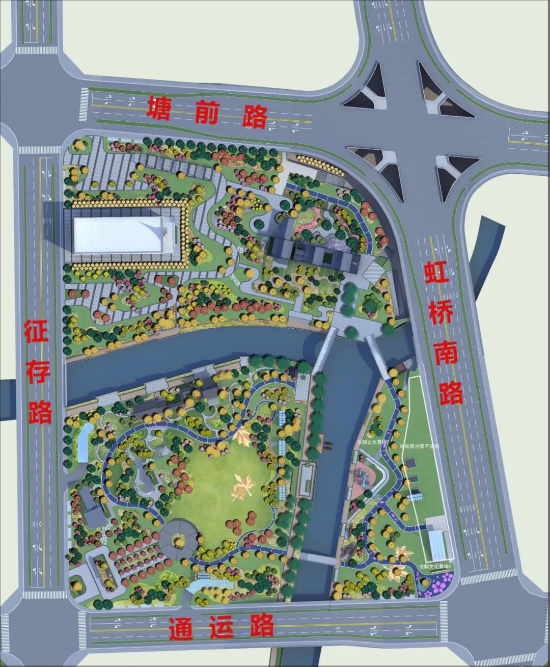 八字桥休闲文化公园位于征存路东、塘前路南、虹桥南路西、通运路北侧,公园总面积约3.53万平方米,按区级公园标准设计,定位为南门休闲文化公园。
