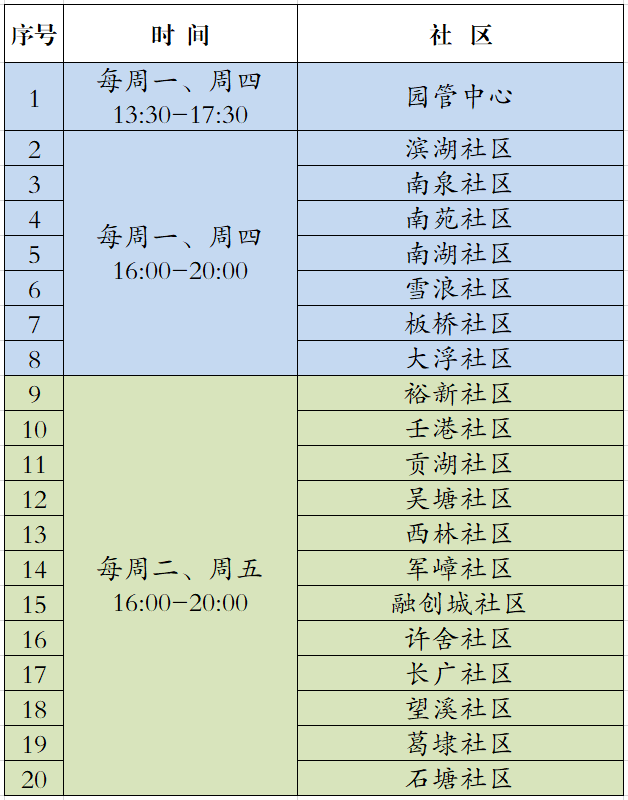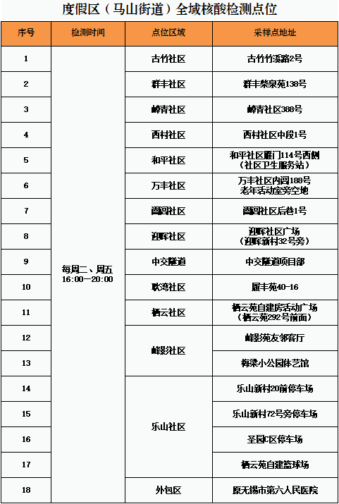 胡埭镇新冠肺炎疫情联防联控指挥部研究决定,自下周起,每周一、周四17:00-20:00开展常态化区域核酸采样。如有调整,另行公告。