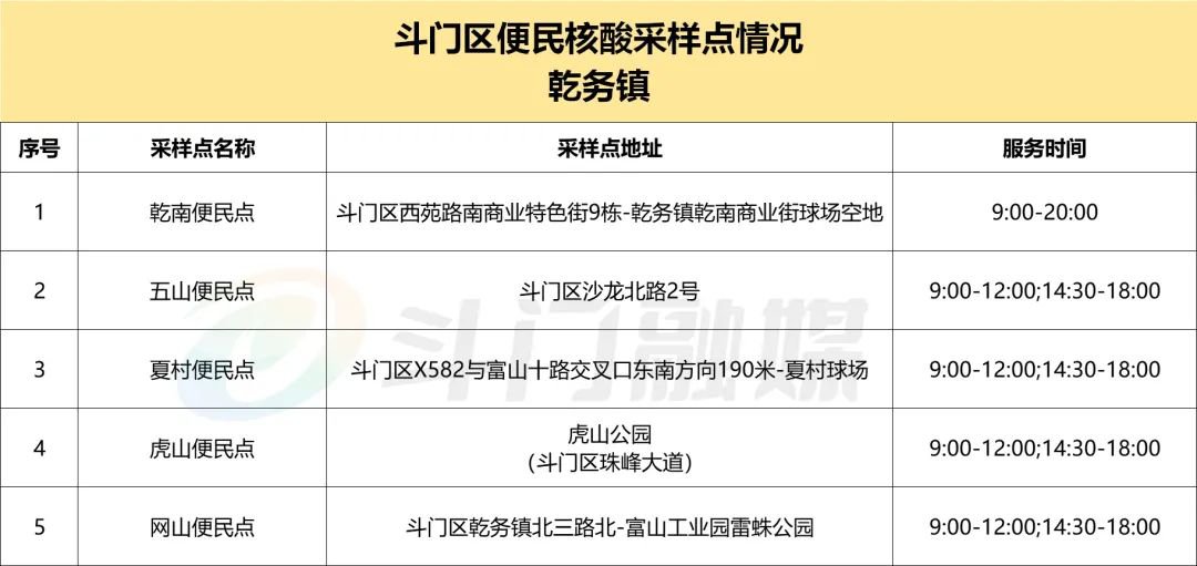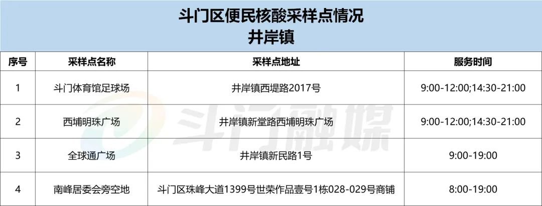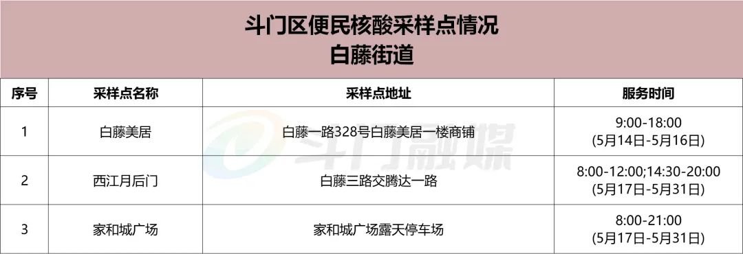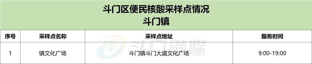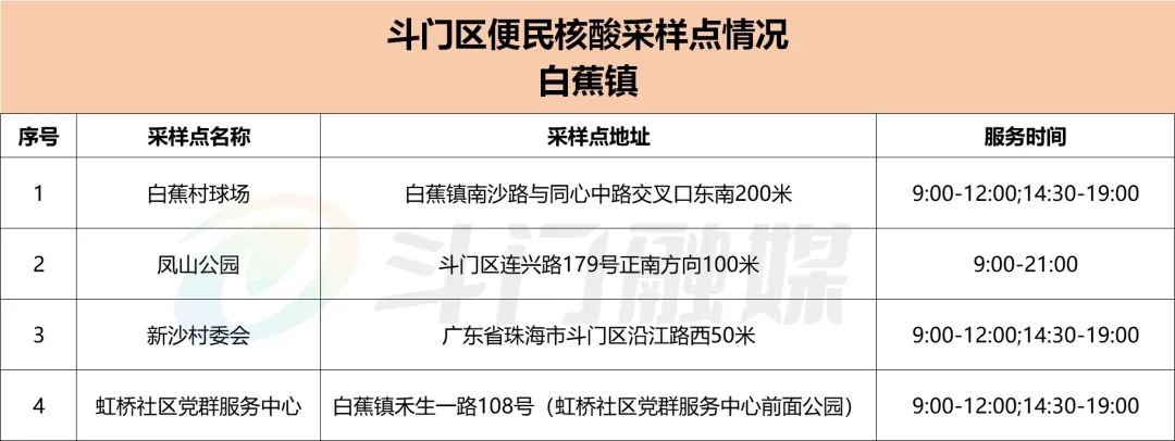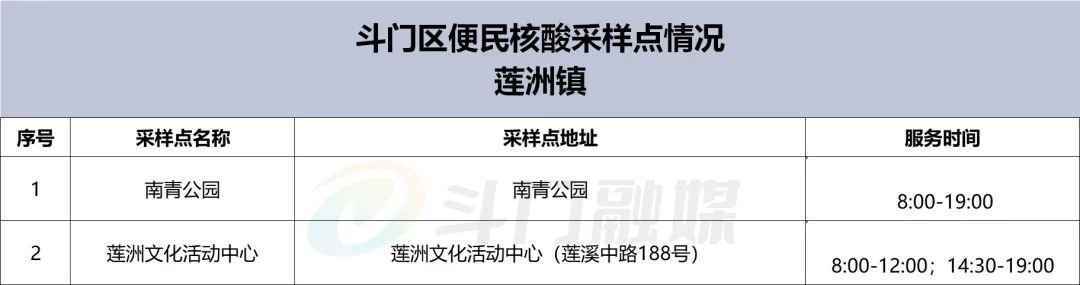 5月14日起,斗门便民核酸采样点全面恢复服务,全区共设29个便民核酸采样点。