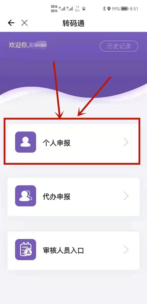 2、点击“转码通”—进行“个人申报”