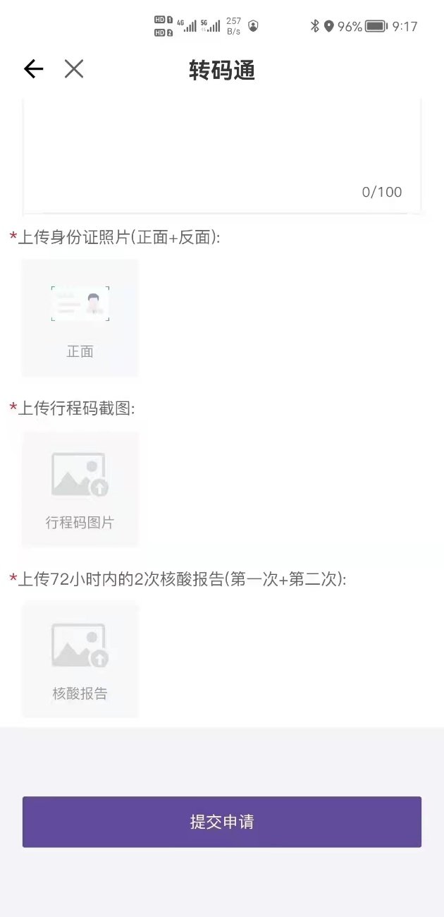4、点击“提交申请”并确认“承诺书”疾控部门工作人员对符合要求者进行转码操作