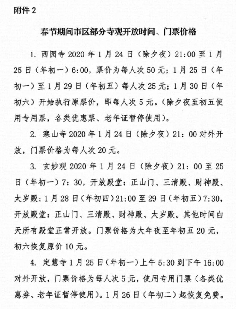 此外,为了分流烧香人员,今年各寺庙的法会等仪式时间也有所调整。各寺庙道观也都公布了相应的开放时间,市民可对照前往: