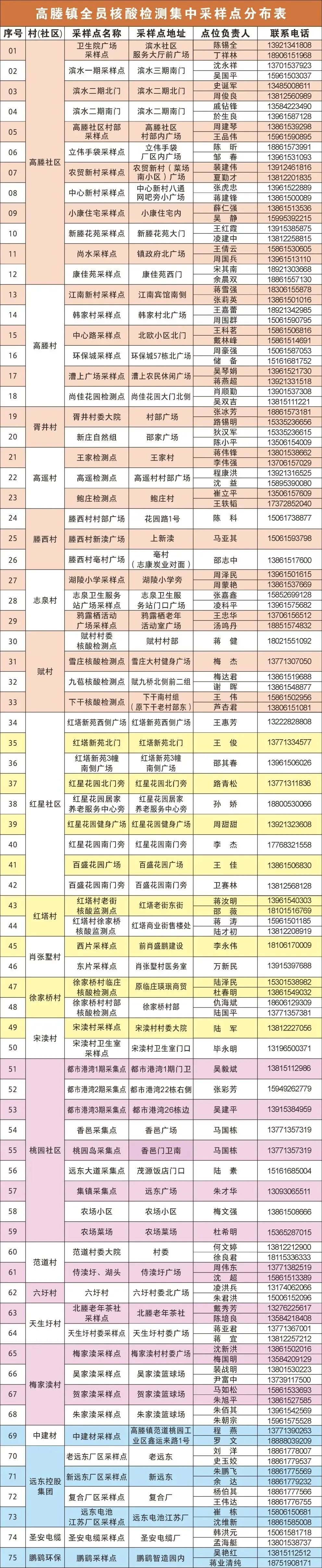 备注:第3、37、40、42、53、55、59号检测点暂时关闭,请居民朋友就近参加核酸检测,如有疑问请及时与村(社区)联系。