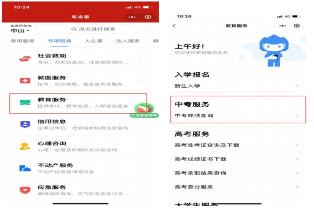粤省事中考成绩查询方式