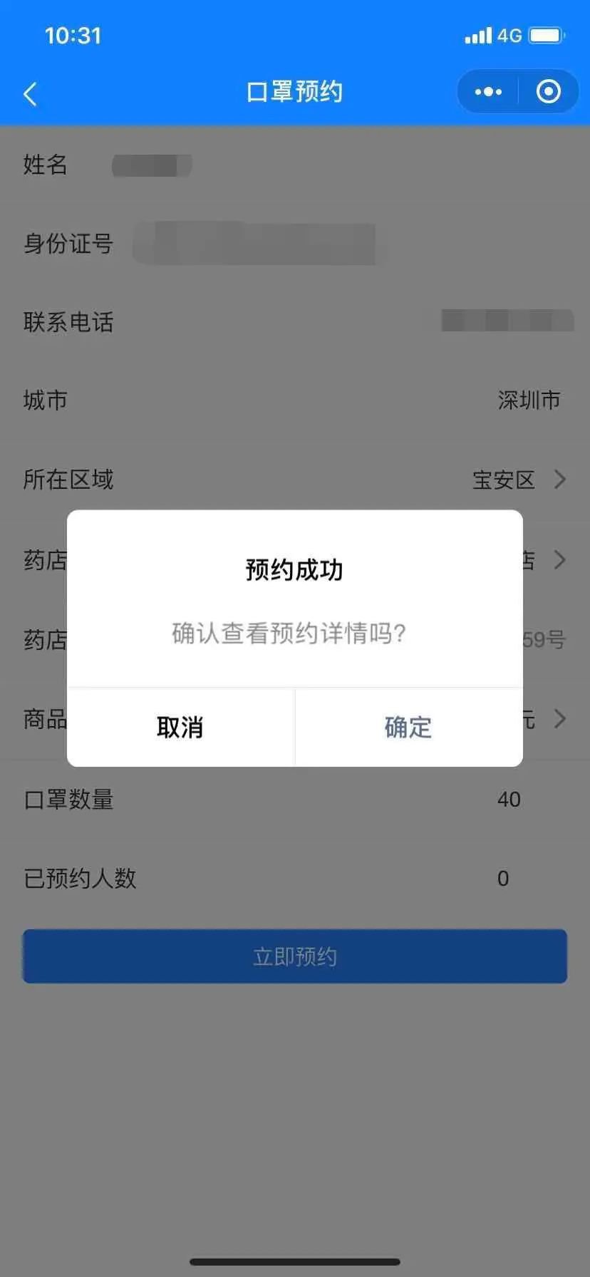7、提交信息之后,点击【立即预约】即为预约成功,之后请耐心等待中签信息的短信。