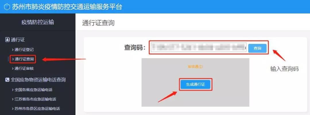 3、待审核后,点击“查询”栏,输入“查询码”查询审核结果。
