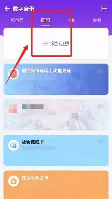 (二)进入“灵锡”APP,首页点击“数字身份”→“添加证照”→“居家健康监测证明”。