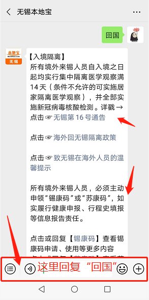 温馨提示:微信搜索公众号“无锡本地宝”,在聊天框回复“回国”,查询海外回国政策;回复“锡康码”,即可进入锡康码申报入口,查询申报流程;回复“苏康码”进入苏康码申报入口,查询申报流程!