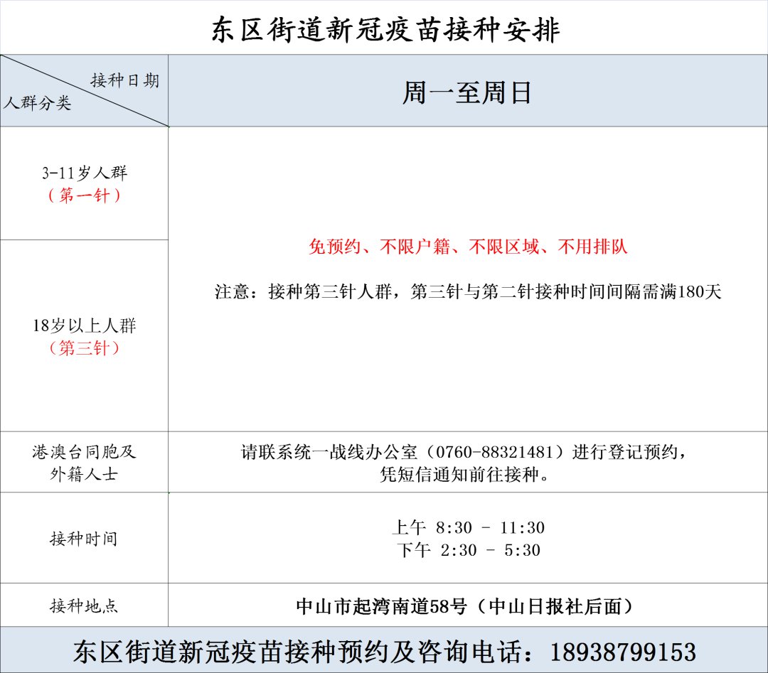 为全力筑牢疫情防控屏障,确保新冠疫苗“应接尽接”,东区街道新冠疫苗临时接种点,将对以下人群开放免预约接种,不限户籍、不限区域、不用排队!