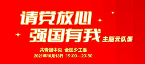 共青团中央、全国少工委将于10月13日19:00——20:30推出“请党放心,强国有我”主题云队课。
