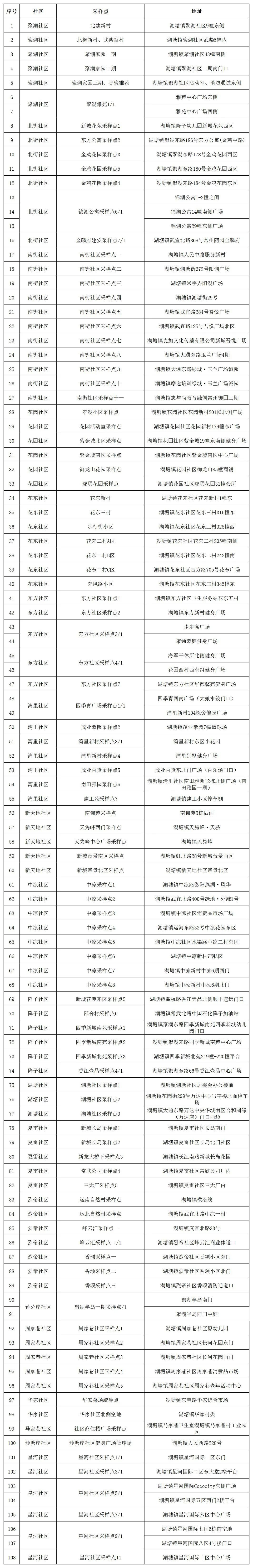 1.为方便居民朋友参与检测,社区设置了多个采样点,请在规定时间内有序到就近采样点参加核酸检测,企业和商铺工作人员请到就近社区采样点参加核酸检测。学校师生不参加本次我镇全员核酸检测。未及时接受核酸采样将被赋黄码,可能影响您的正常工作生活!