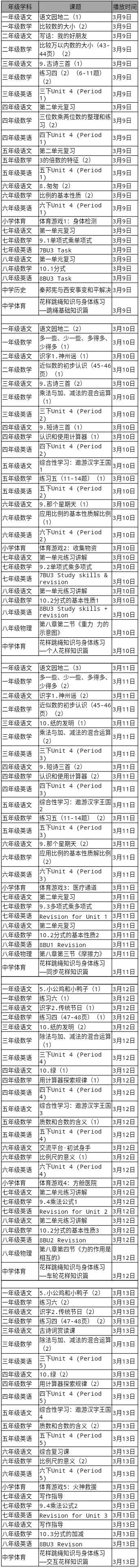 无锡梁溪名师在线第五周课表