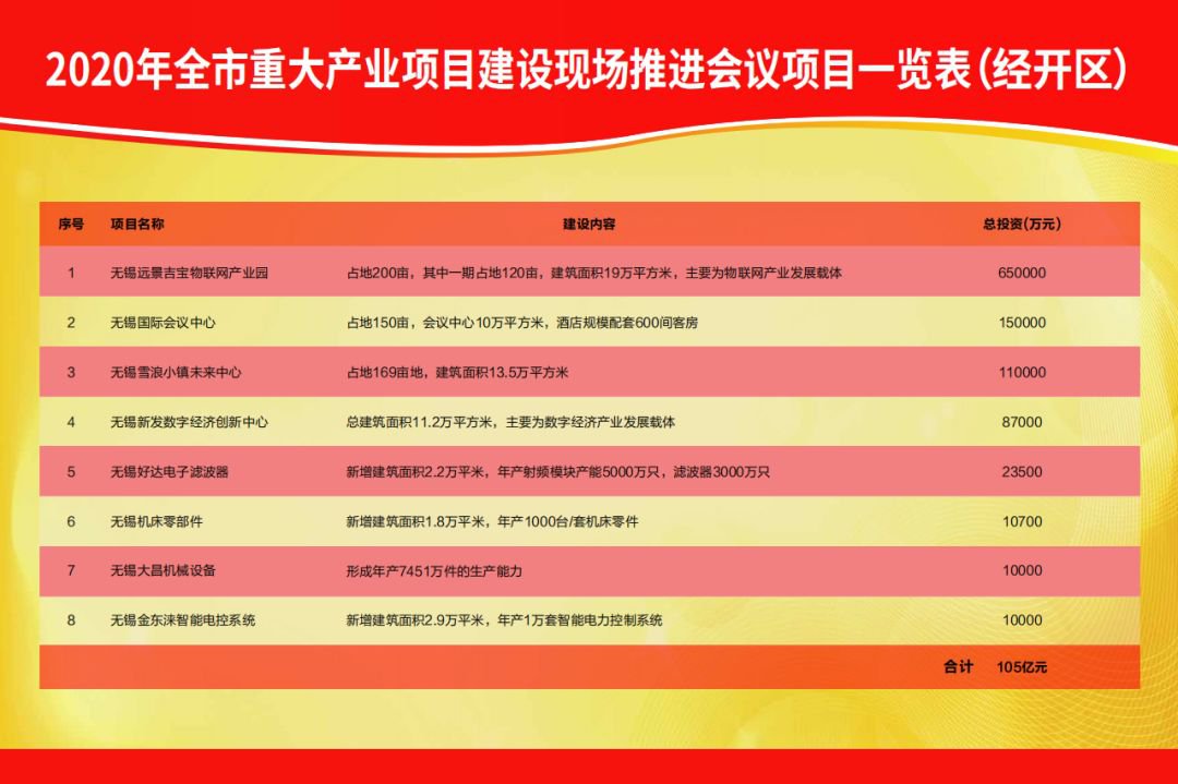 2020年1月2日,经开区共有8个重大产业项目参加集中开工,计划总投资105亿元,具体项目如下: