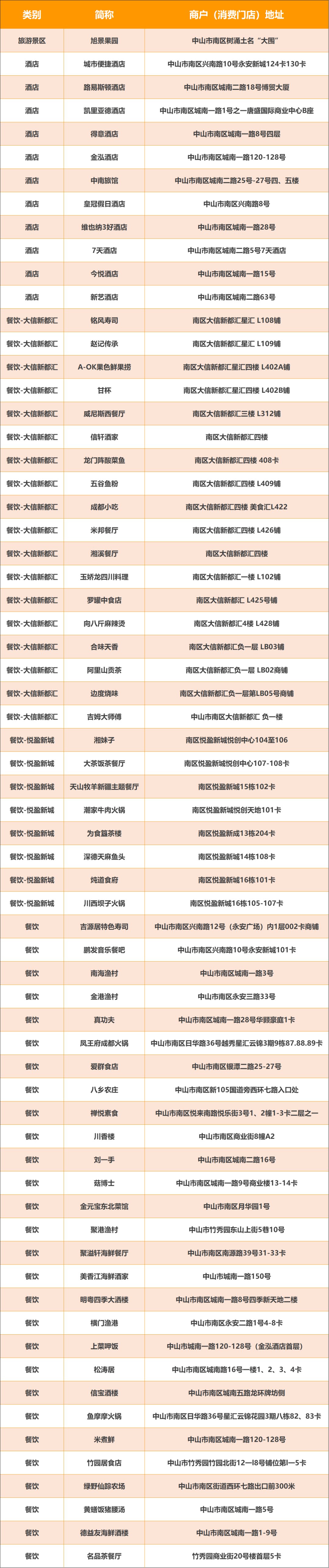 2020中山南区消费券可以在哪些店使用?