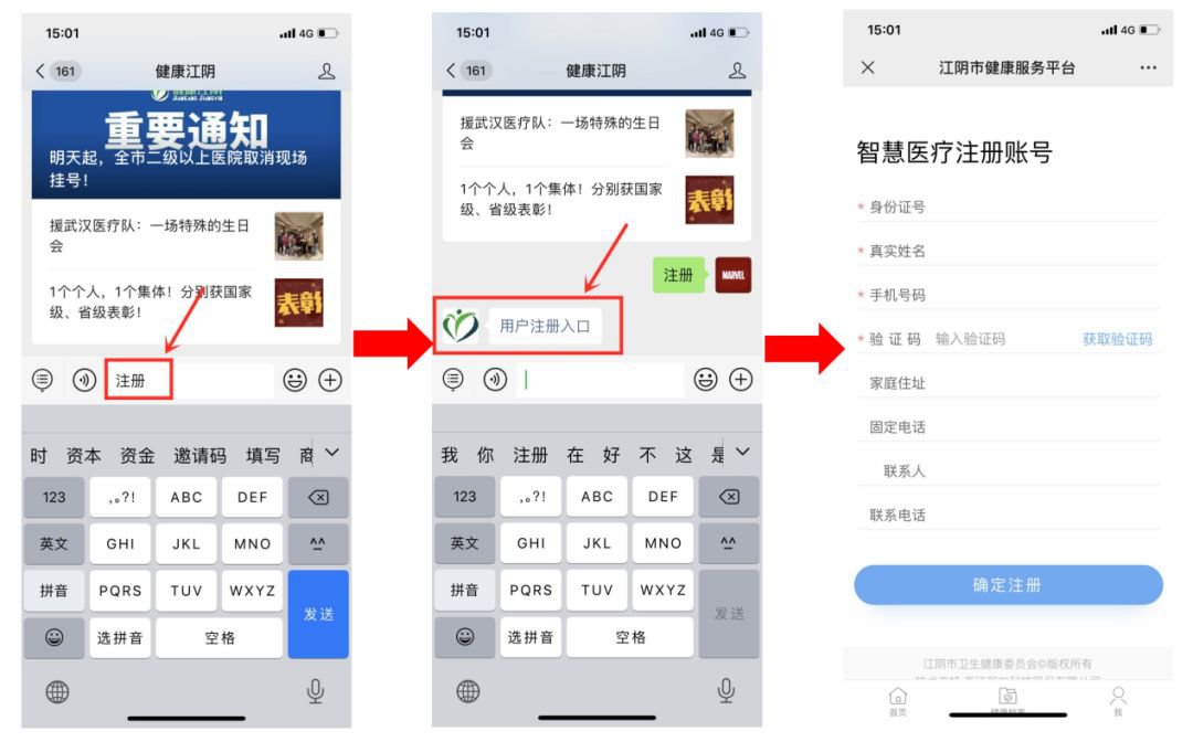 答:未在本市参保居民无法签约,但可以通过注册后进行预约挂号,在“健康江阴”微信公众号对话框发送“注册”获取用户注册入口,输入身份证号码(护照等)、手机号等个人信息即科完成注册流程。注册用户预约挂号后,也可在手机上完成签到、支付挂号费,不用到医院现场签到转号。