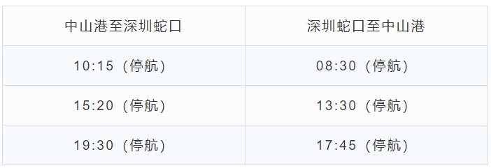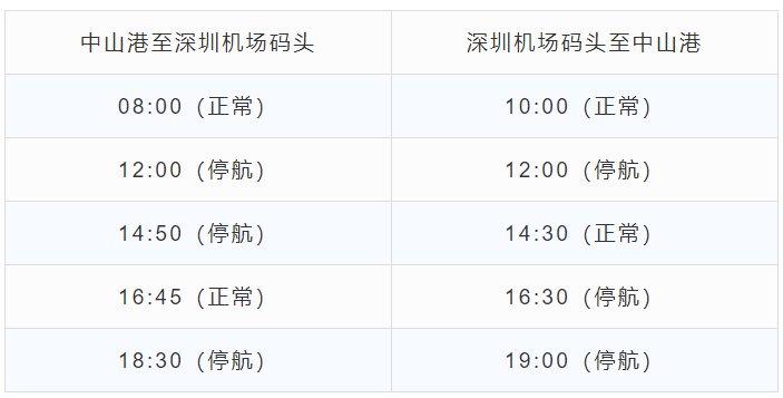 自2022年1月10日起,深圳机场码头往返中山部分航线暂停,复航时间另行通知。