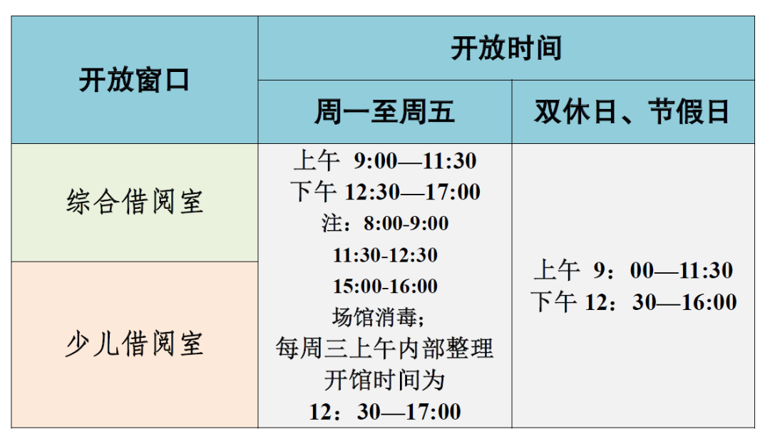 1、开放时间:9:00-17:30(每周三上午内部整理,12:00-17:30开放)。