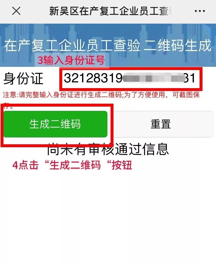 二、输入查询人身份证号³,点击“生成二维码”⁴按钮,即可查询到在产复工员工证明⁵与快速查验二维码⁶。