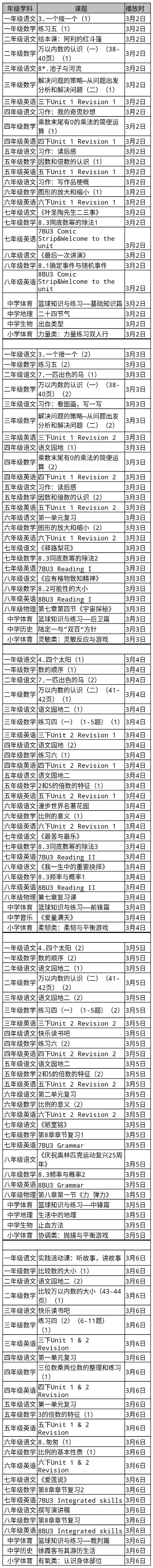 无锡梁溪名师在线第四周课表