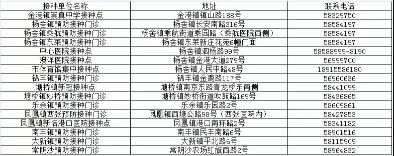 全市各接种点地址及联系电话