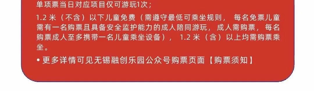 2.游客进入无锡融创乐园必须携带好身份证件(身份证、港澳台证件及国外护照)、佩戴口罩,并持有“锡康码”,配合景区工作人员进行体温检测、核验“锡康码”、扫码登记防疫信息,核验通过后刷卡及人脸识别过闸入园;检测异常人员谢绝入园并至临时观察室,必要时报本地疫情防控部门处理。感谢游客市民朋友们一直以来的关心、理解和支持,如有疑问,欢迎拨打客服热线400-139-8666,热忱欢迎大家前来无锡融创乐园畅玩人生。