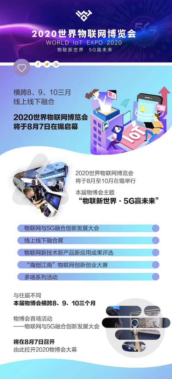 2020世界物联网博览会于8月至10月在无锡举行
