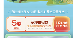 使用时间:定在7月10日至9月30日之间每周的周日至周四(法定节假日除外)的订单,在预订带有“京郊住宿券”标识的酒店和乡村民宿时使用。