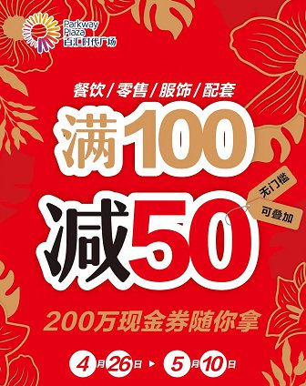 3、凭本券可在参与活动的商家享实付满100元减50元,满200元减100元,可无限叠加;