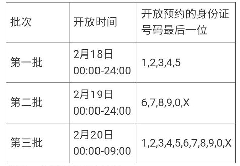 4、第二轮开放预约时间为2月18日00:00至2月20日09:00。“健康苏州掌上行”及“苏州银行”手机银行APP按身份证号码最后一位,分批次开放预约登记,具体规则如下: