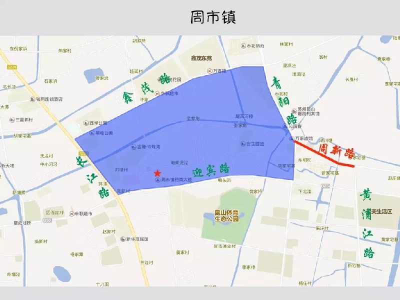 鑫茂路(不含)以南、青阳路(不含)以西、迎宾路(不含)以北、长江路(不含)以东区域,周新路(青阳路—黄浦江路)路段;