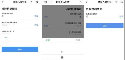 继续填写个人核酸检测情况,未做过核酸检测的人员在“是否已核酸检测”一栏选“无”后可直接提交申报。